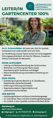 Die Giardina zählt zu Europas führenden Indoorveranstaltungen für das Leben im Garten. Die bedeutendsten Anbietenden der Branche präsentieren jeweils zum Frühlingsbeginn ihre neuen Produkte, kreative Lösungen und die kommenden Trends in der Gartengestaltung, dieses Jahr unter dem Motto «Der Baum – Die Seele des Gartens». Weitere Infos und Tickets