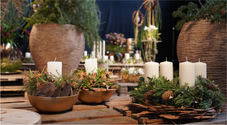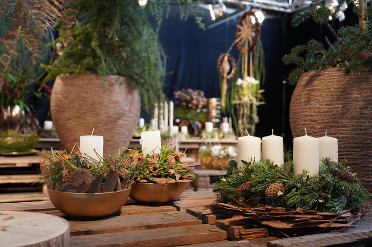 Das Herzstück der Ideenwoche ist die Ausstellung im Pflanzenforum Süd-West. Exklusiv für Fachbesucher und Wiederverkäufer präsentiert Josef Dirr über 100 floristische Meisterwerke in atmosphärisch gestalteten Themenwelten. Alle Arrangements sind praxistauglich konzipiert: Materialien können direkt bei den angeschlossenen Großhändlern erworben und sofort für den Adventsverkauf umgesetzt werden.