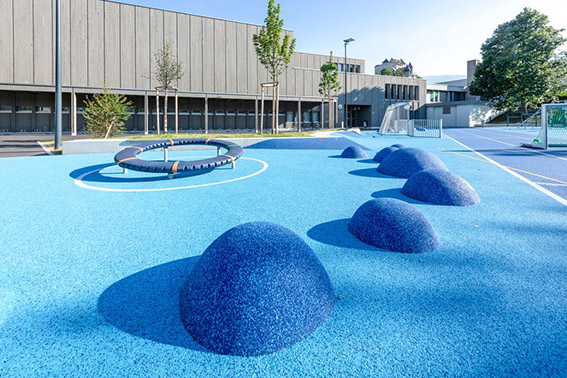 Der Blaue Platz in Balzers ist ein multifunktionaler Allwetterplatz mit freier Form und vielfältigen Bewegungsangeboten. Er dientdem Schul- und Pausensport und steht ausserhalb der Unterrichtszeiten der Öffentlichkeit offen. Die Jury lobte das Projekt als Beispiel dafür, «wie sich aus begrenztem Raum ein Ort schaffen lässt, an dem Kinder ihre Vorstellungskraft entfalten können».