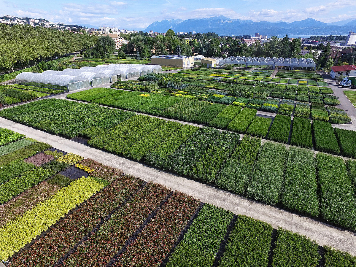 Betriebsfläche: 20 ha, davon 4000 m² Gewächshausfläche, 2000 m² Folientunnels, 4 ha Containerfläche, 15 ha Freilandfläche und 2000 m² Verkaufsfläche im Baumschulbetrieb, sowie ein 2000 m² grosses Gartencenter im benachbarten Crissier (VD)