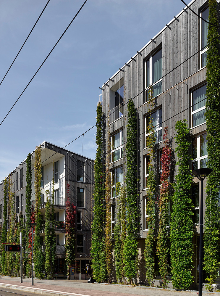 «Die Gebäudehülle bietet ungefähr fünfmal so viel Fläche an wie der bebaute Grund», wird das Potenzial in verdichteten Städten für platzsparende Fassadenbegrünungen beschrieben. Sie können die thermischen Verhältnisse in einer Strassenschlucht verbessern, wenn eine Vielzahl von Fassaden begrünt wurde. Die Effekte durch Fassadenbegrünungen wie Verdunstungskühlung, Verdunstung und Wasserrückhaltung, Filterfunktion für den Feinstaub sollten den Bauherren über Simulationen aufgezeigt werden.