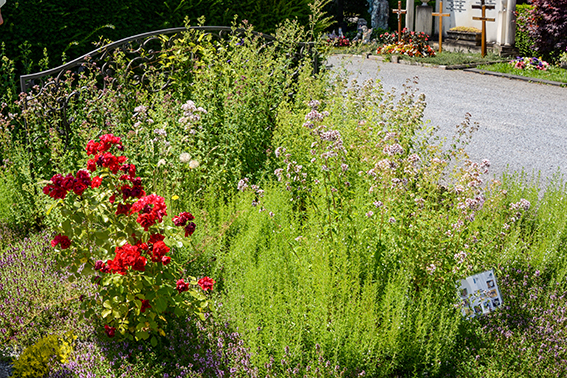 Aufgehobene Reihengräber werden mit einer Wiesenmischung eingesät und von eingemieteten Friedhofsschafen beweidet: Von April bis September beleben die drei bei Gross und Klein beliebten Schafe den Friedhof. |