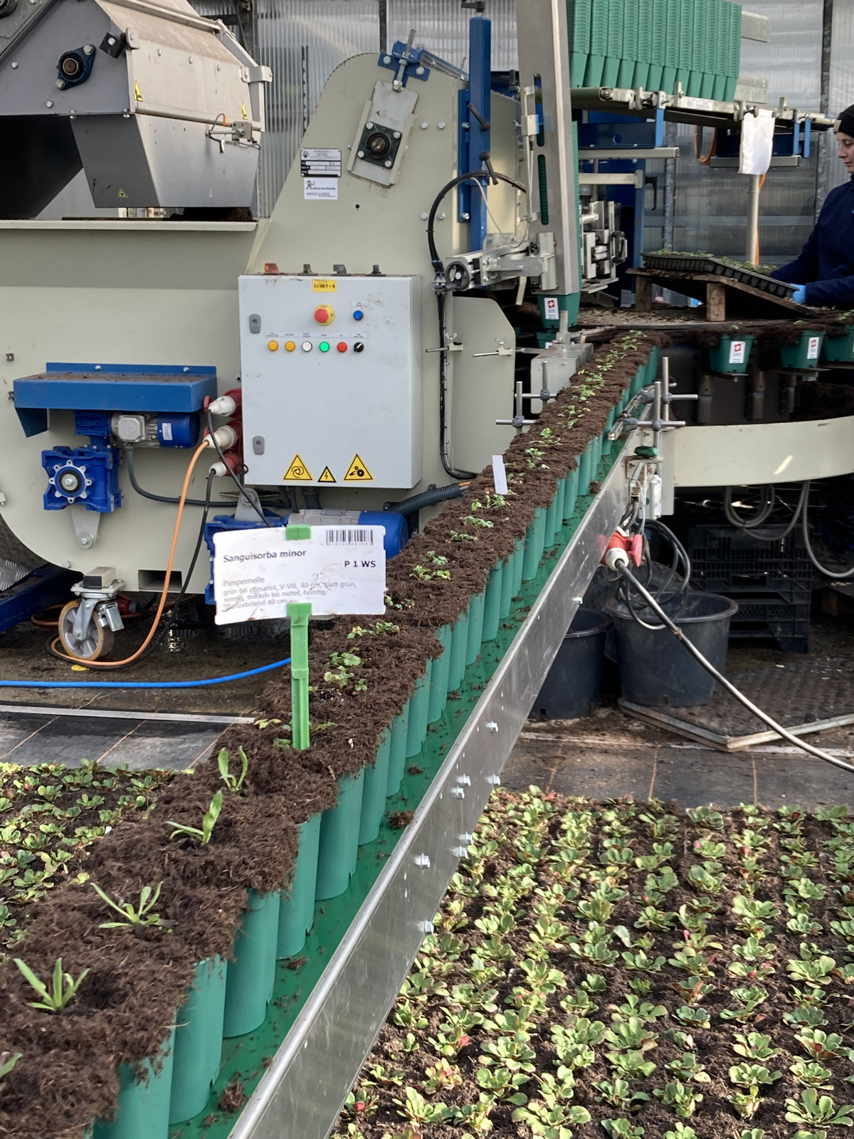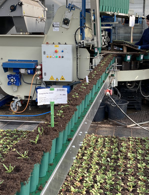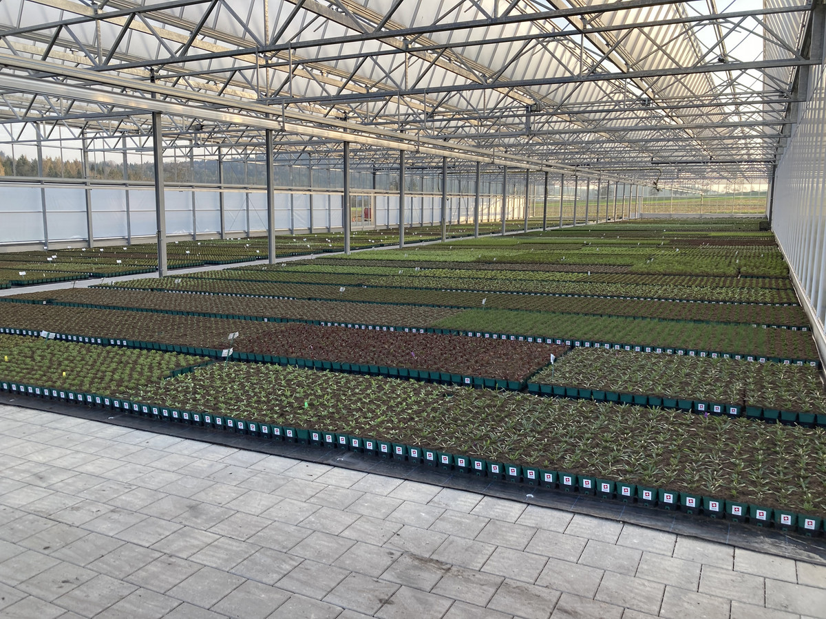 Frisch getopfte Stauden. Die gesamte Gewächshausfläche wird ca. 3-mal pro Jahr belegt.