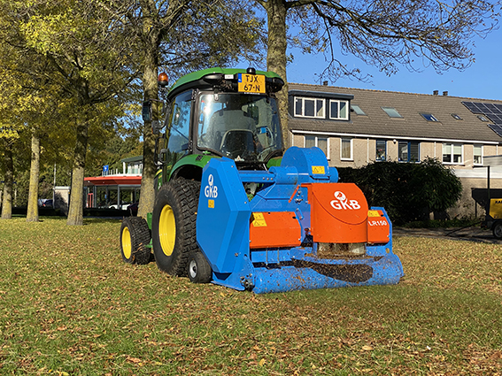 Eine spezielle Maschine vom niederländischen Hersteller GKB Machines macht’s möglich – der Leaf Reducer 150, ein Heckanbaugerät für Schlepper ab 45 kW Motorleistung. Er nimmt das Laub mit einem Zinkenrotor auf und pulverisiert es in einem Häckselrotor in eine feinkörnige Fraktion, die von einem Auswurfteller in einstellbarer Breite auf der Fläche verteilt wird. Laut Hersteller (Vertrieb Schweiz über Maschinencenter Wittenbach) kann das Verfahren beispielsweise in städtischen Parkanlagen und auf anderen Rasenflächen eingesetzt werden. Nach dieser zirkulären Methode werden die organischen Abfälle in wertvolle Bodenverbesserer umgewandelt und es wird Geld für Düngemittel eingespart, anstatt Kosten für die Entsorgung zu verursachen.