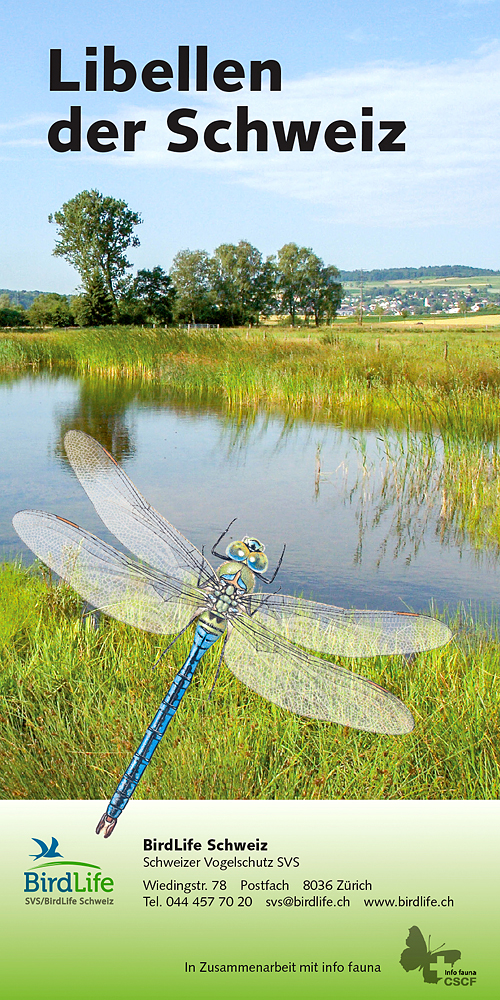 Ein neuer Feldführer von BirdLife Schweiz stellt alle 72 regelmässigen in der Schweiz auftretenden Arten anhand von fantastischen Zeichnungen und einem kurzen Text vor. So ermöglicht der 56-seitige Führer, die Tiere direkt im Feld oder anhand von Fotos zu bestimmen. Überdies gibt er in weiteren Kapiteln einen Überblick über die Lebensweise der Libellen zwischen den Welten Luft und Wasser, geht auf deren Körperbau ein und gibt Tipps für die Beobachtung. Der letzte Teil widmet sich dem Libellenschutz und ihrer Förderung.