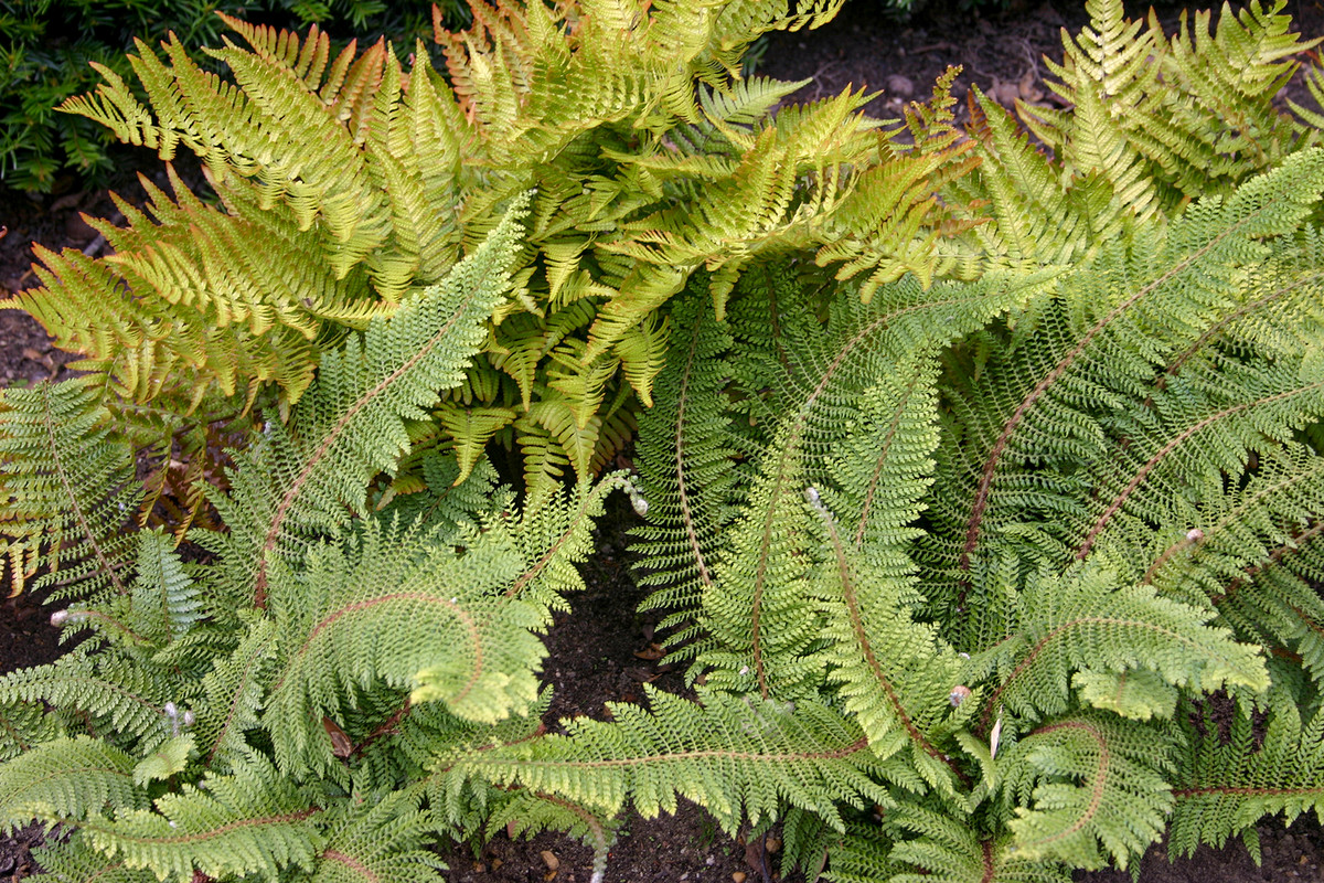 Das hat sich zum Glück geändert. Heute stellen Freilandfarne eine begehrte Bereicherung in der Gartengestaltung dar. Sie besetzen Nischen, die mit anderen Pflanzen nur schwer auszufüllen sind. Die meisten Farne bevorzugen feuchte und schattige Gartenbereiche. Sie zählen damit zu den auffälligsten Schattenpflanzen. Geeignet sind feuchte Humusböden unter Gehölzen oder im lichten Schatten, z. B. zwischen Sträuchern oder Grossstauden. Hohe Arten bilden einen idealen Hintergrund für Staudenpflanzungen oder empfehlen sich für Übergänge zwischen Gehölzen und Stauden. Ihre grünen Blattwedel schaffen Ruhepunkte und vermitteln zwischen allzu bunten Pflanzungen. Wie Gräser dürfen Farne in keinem Garten fehlen. Die Chance für eine zunehmende Verbreitung steht nicht schlecht. Dies weil viele unserer Hausgärten in die Jahre gekommen sind und aufgrund grosser Gehölze über ausreichend Schatten und humose Böden verfügen. Bei dem inzwischen riesigen Sortiment ist es allerdings nicht einfach, eine Wahl zu treffen oder richtig zu beraten, denn nicht jede Farnart ist überall gleich gut einsetzbar.