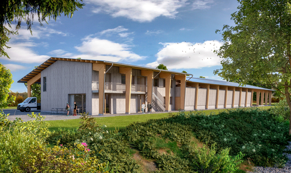 Das neue Berufsbildungszentrum soll den Lernenden eine zeitgemässe Infrastruktur für die überbetrieblichen Kurse und das Qualifikationsverfahren bieten. Im zweistöckigen Schulungsgebäude fondet das Büro der Instruktoren, das Sekretariat, ein Aufenthaltsraum sowie zwei Schulungszimmer Platz. Unter demselben Dach befinden sich in der Verlängerung eine geschlossene Werkhalle sowie eine Arbeitshalle für die Aussenarbeiten, wo witterungsunabhängig in kleinen Gruppen Erd- und Steinarbeiten geübt werden können. Eine allfällige Erweiterung des Gebäudes sei nach Angaben der Architekten ohne grossen Aufwand möglich.