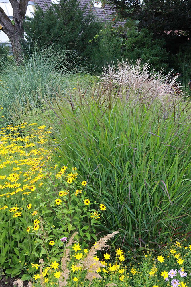 Panicum wünscht einen vollsonnigen Standort. Die meisten Gartensorten gehören der Art P. virgatum an und gedeihen auf allen mässig trockenen bis frischen Böden. An Strassenrändern, wo viele Pflanzen unter Streusalzeinträgen leiden, eignet sich laut Hertle P. amarum ‘Dewey Blue‘ besonders gut. Und das nahezu ohne Pflege. «Während der vierjährigen Sichtungszeit haben wir die Pflanzen nicht ein einziges Mal gewässert, doch bis auf wenige sehr breitblättrige Sorten zeigten sie keinerlei Trockenschäden. Düngen ist auf den typischerweise gut versorgten Gartenböden ebenfalls überflüssig», so der Vorsitzende des Arbeitskreies Staudensichtung, der lediglich einen jährlichen bodennahen Rückschnitt im zeitigen Frühjahr empfiehlt.