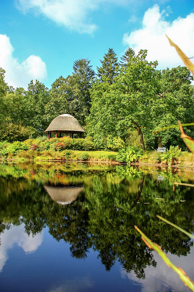 Die Frage nach den typischen Merkmalen des Englischen Landschaftsgartens sollte sich schon an den Eingangstoren des Schlossparks Lütetsburg erledigt haben. Begrüsst wurden wir von einer Parkspezialistin, die ihr Wissen nicht nur auf den historischen Hintergrund des Schlossparks begrenzte, sondern auch in der Botanik und der Erzählung von Gedichten brillierte. Davon abgesehen war es die geballte Schönheit des im frühromantischen Stil angelegten Schlossparkes, der die Technikerklasse begeisterte. Die dem Wasserschloss mit Vorburg angeschlossene Parkanlage wurde von Graf Edzard Moritz zu Innhausen und Knyphausen von 1790 bis 1830 erbaut und ist heute eine der wenigen erhaltenen Parkanlagen dieser Art.