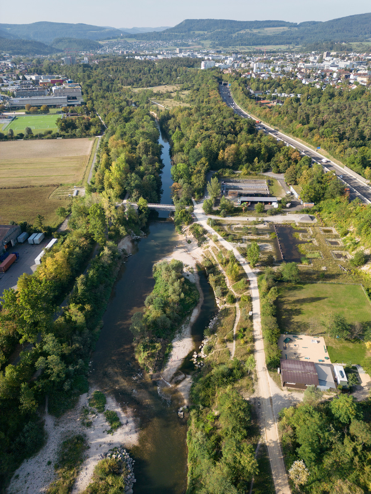 Der Birspark, der verschiedene bestehende und neue Landschaftsoasen verknüpft und einen hochwertigen Lebens- und Begegnungsraum für Mensch und Natur bietet. Foto: Gaëtan Bally, Keystone, Schweizer Heimatschutz