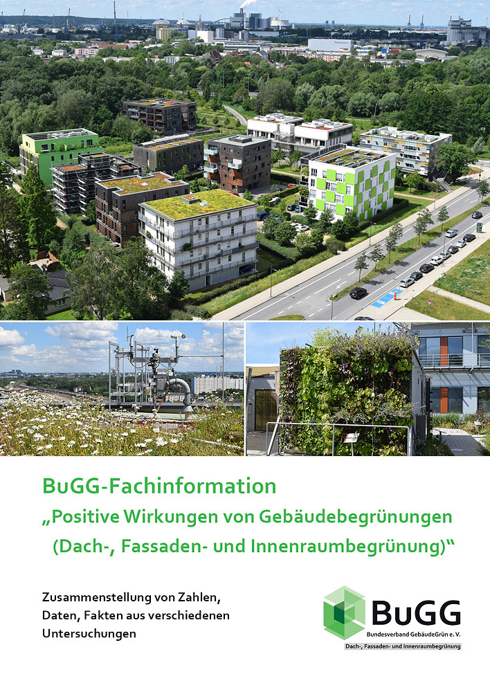 In der neu vorliegenden Broschüre «Positive Wirkungen von Gebäudebegrünungen» hat der Bundesverband GebäudeGrün e.V. (BuGG) unter der Projektleitung von Felix Mollenhauer - und Mitarbeit von Rebecca Gohlke und Dr. Gunter Mann – eine Zusammenstellung der wichtigsten Argumente «Pro Dach-, Fassaden- und Innenraumbegrünung» vorgenommen und mit ausgewählten Untersuchungsergebnissen und Quellenangaben hinterlegt. Sie soll ein erster Schritt ein einfaches Nachschlagewerk für Planende, Bauende und Gebäudebegrüner sein, um Bauherren, zu überzeugen. Link zum Download